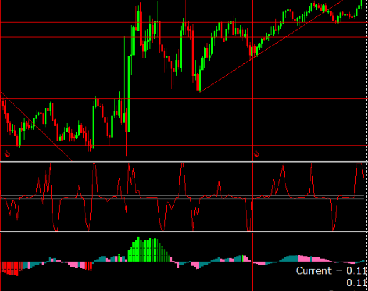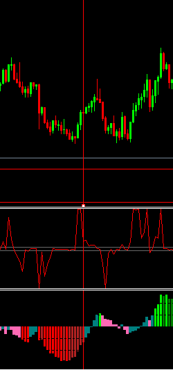2.Сигнальщик.Индикатор имульса.Например ТD - один из них(с периодом 2 или 3).Есть и другие. Если такой пик(импульс) возникает против тренда, куда пойдёт цена по его окончании?Естественно с большей вероятностью - по тренду.И тем вероятнее чем сильнее и устойчивее тренд.