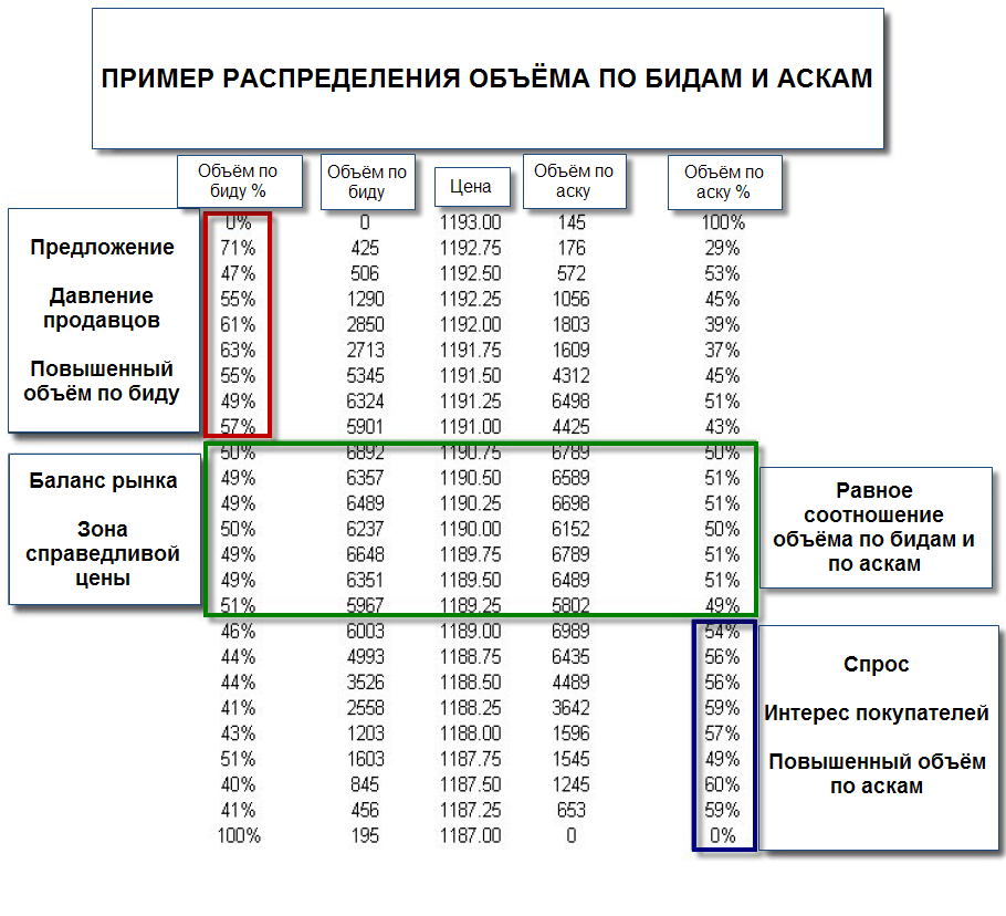 Графически давление покупателей и продавцов можно представить ввиде графика, отображающего проторгованный объём по биду и аску (см. рис. 5).