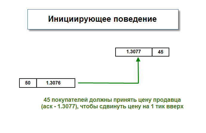 Итак, для того чтобы началось инициирующие движение хотя бы на 1 тик вверх, покупатель