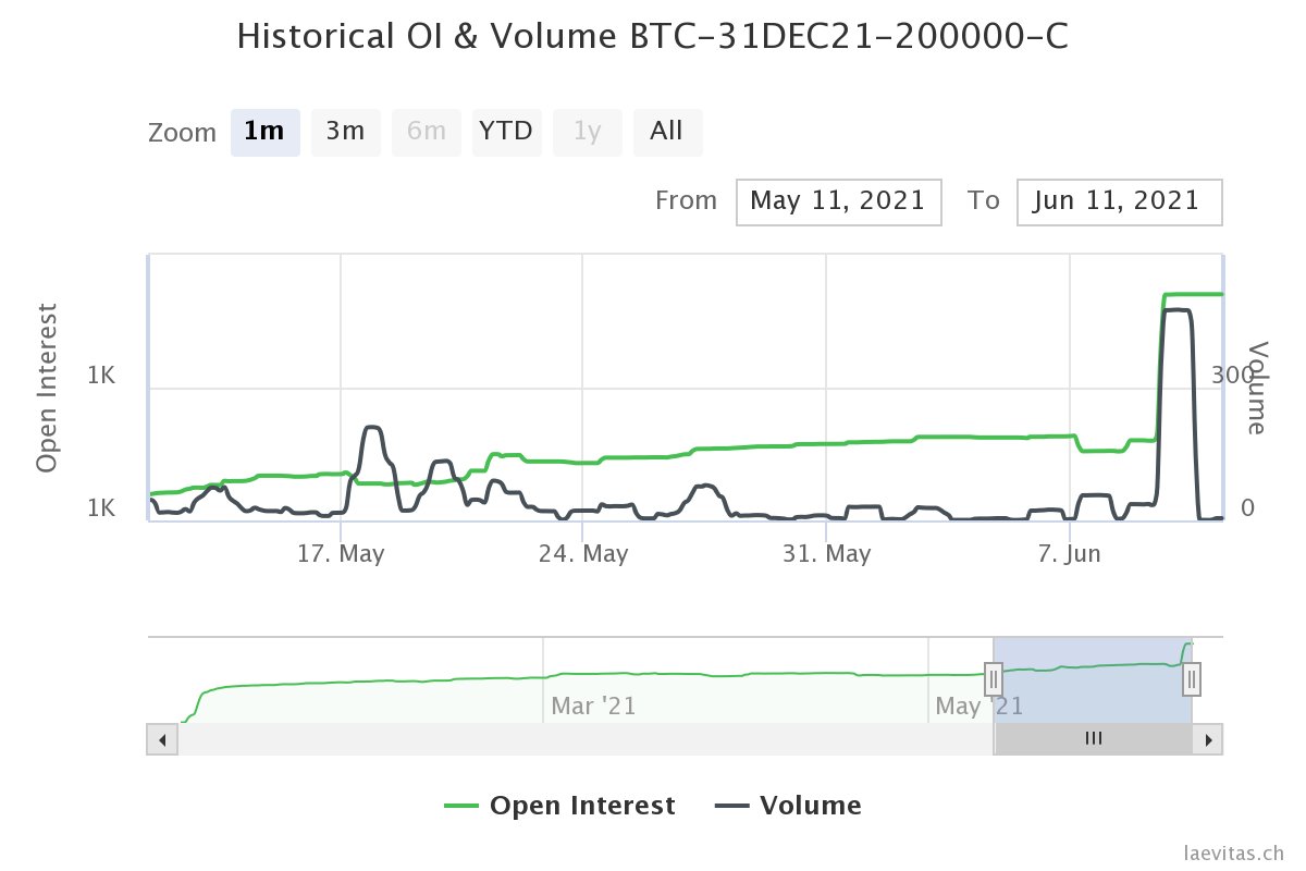 Напомним, Call-опционами называются контракты, которые позволяют трейдеру купить базовый актив по заранее указанной стоимости в конкретный момент времени. Теоретически покупка такого Call-контракта с ценой исполнения в $200 000 на 31 декабря - это ставка на то, что криптовалюта в конце текущего года окажется на более высоких значениях на спотовом рынке.