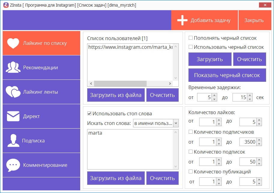 Zinsta - Программа для раскрутки и продвижения instagram